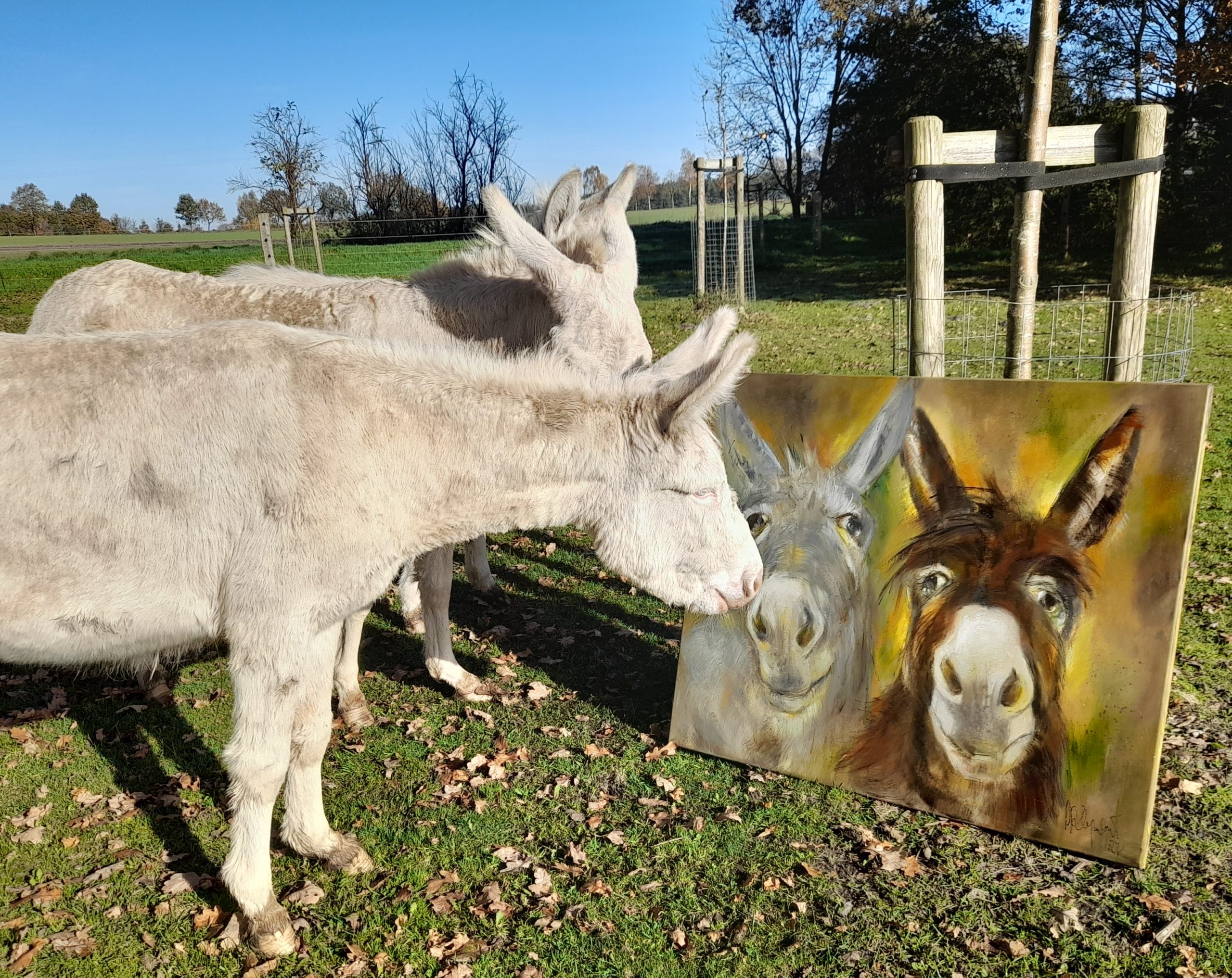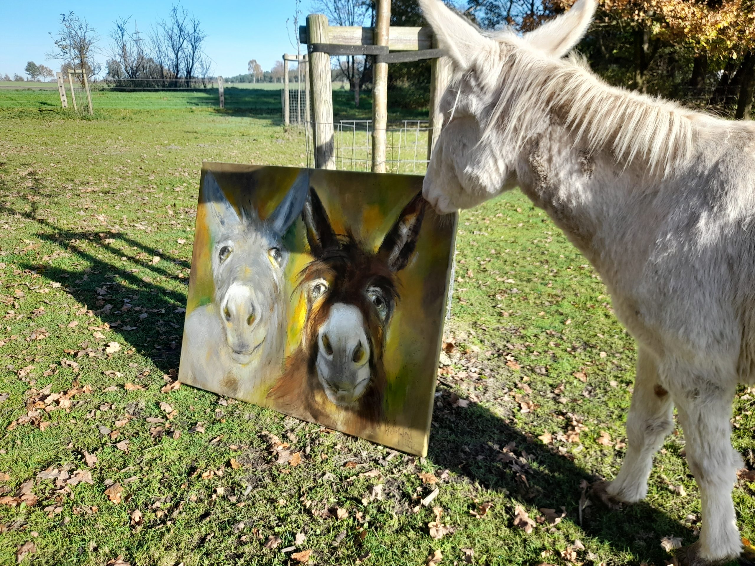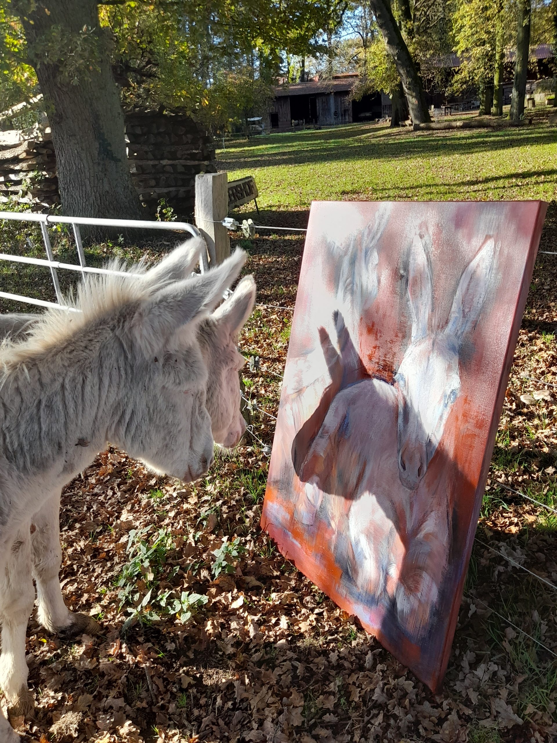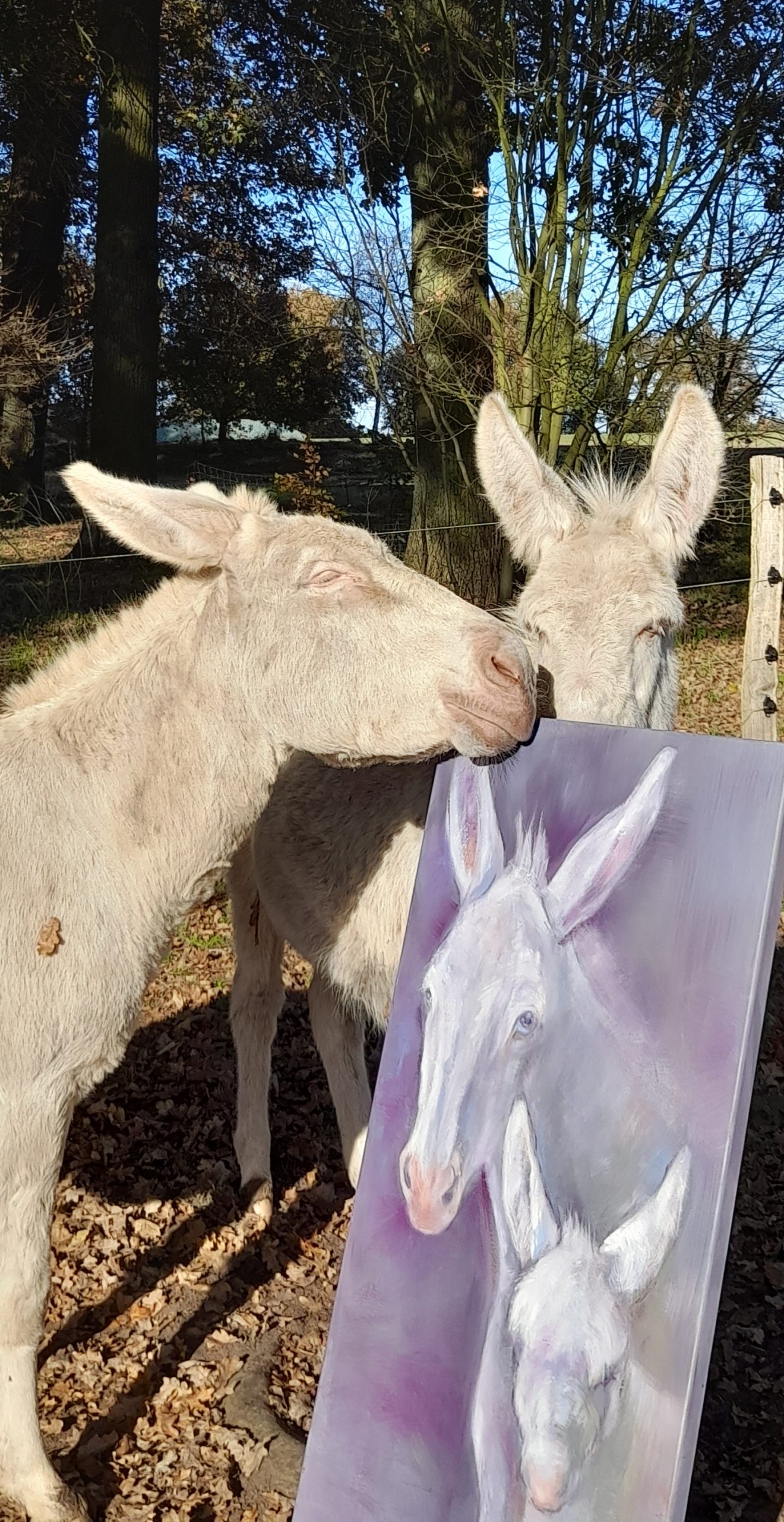 Auf unserem schönen “Höllershof” leben seit einigen Jahren die überaus seltenen Österreich Ungarischen Weißen Barockesel “Marie und Antoinette”. Sie dienen neben aller Freude, die wir mit ihnen haben, als meine Malmodelle.