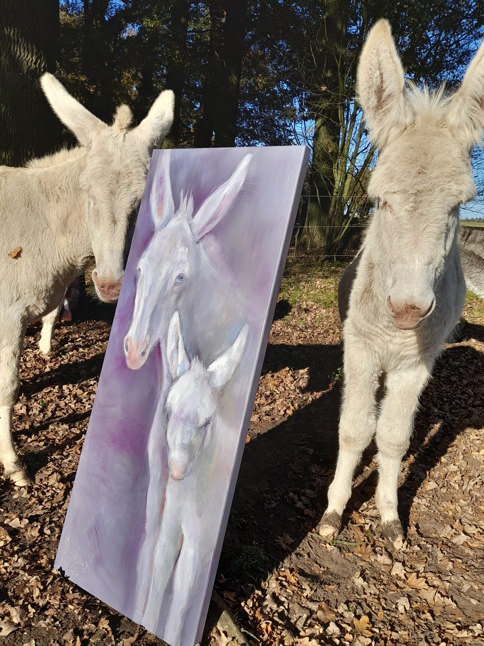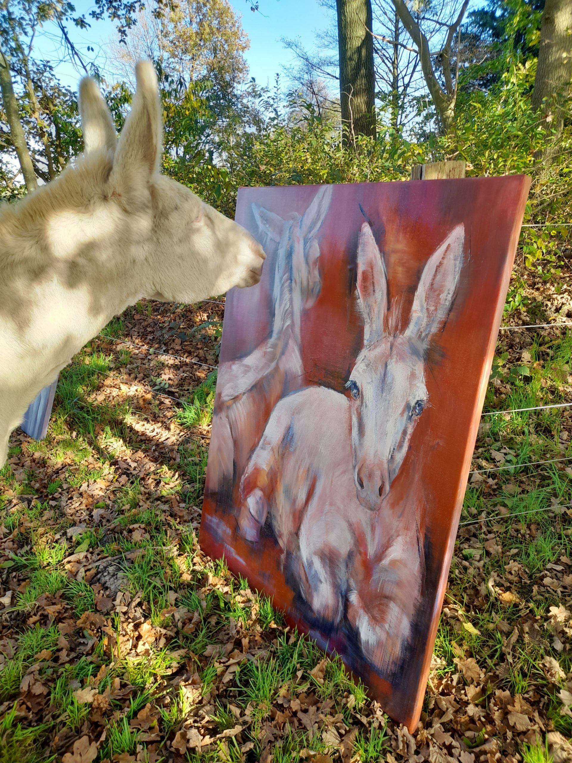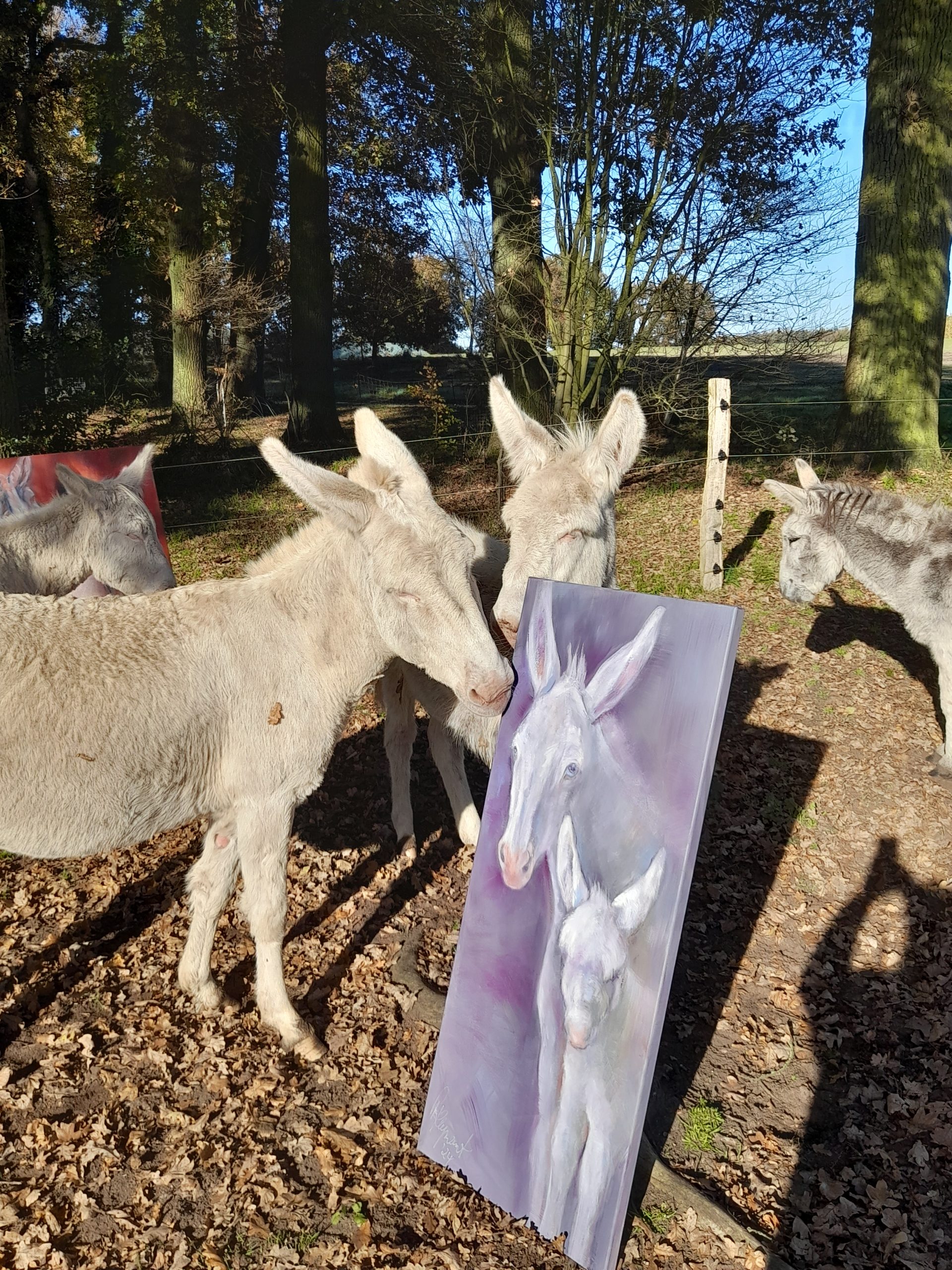 Auf unserem schönen “Höllershof” leben seit einigen Jahren die überaus seltenen Österreich Ungarischen Weißen Barockesel “Marie und Antoinette”. Sie dienen neben aller Freude, die wir mit ihnen haben, als meine Malmodelle.