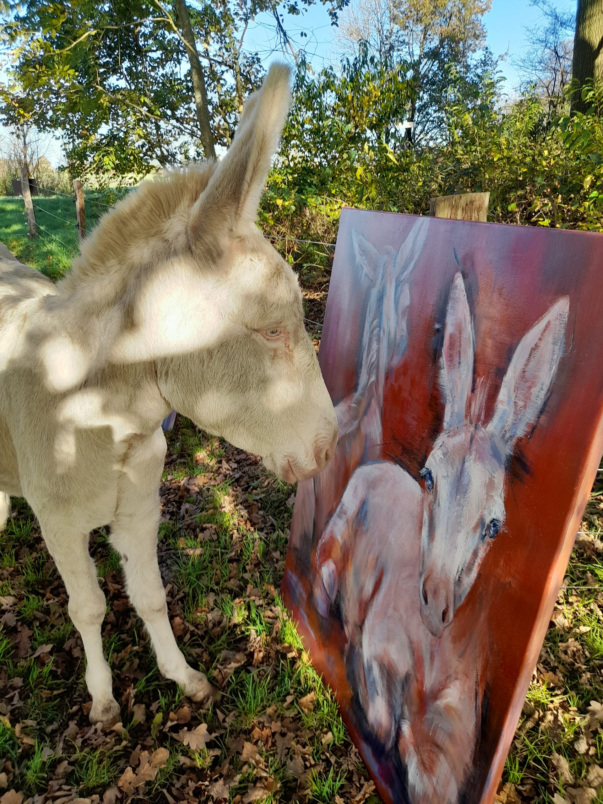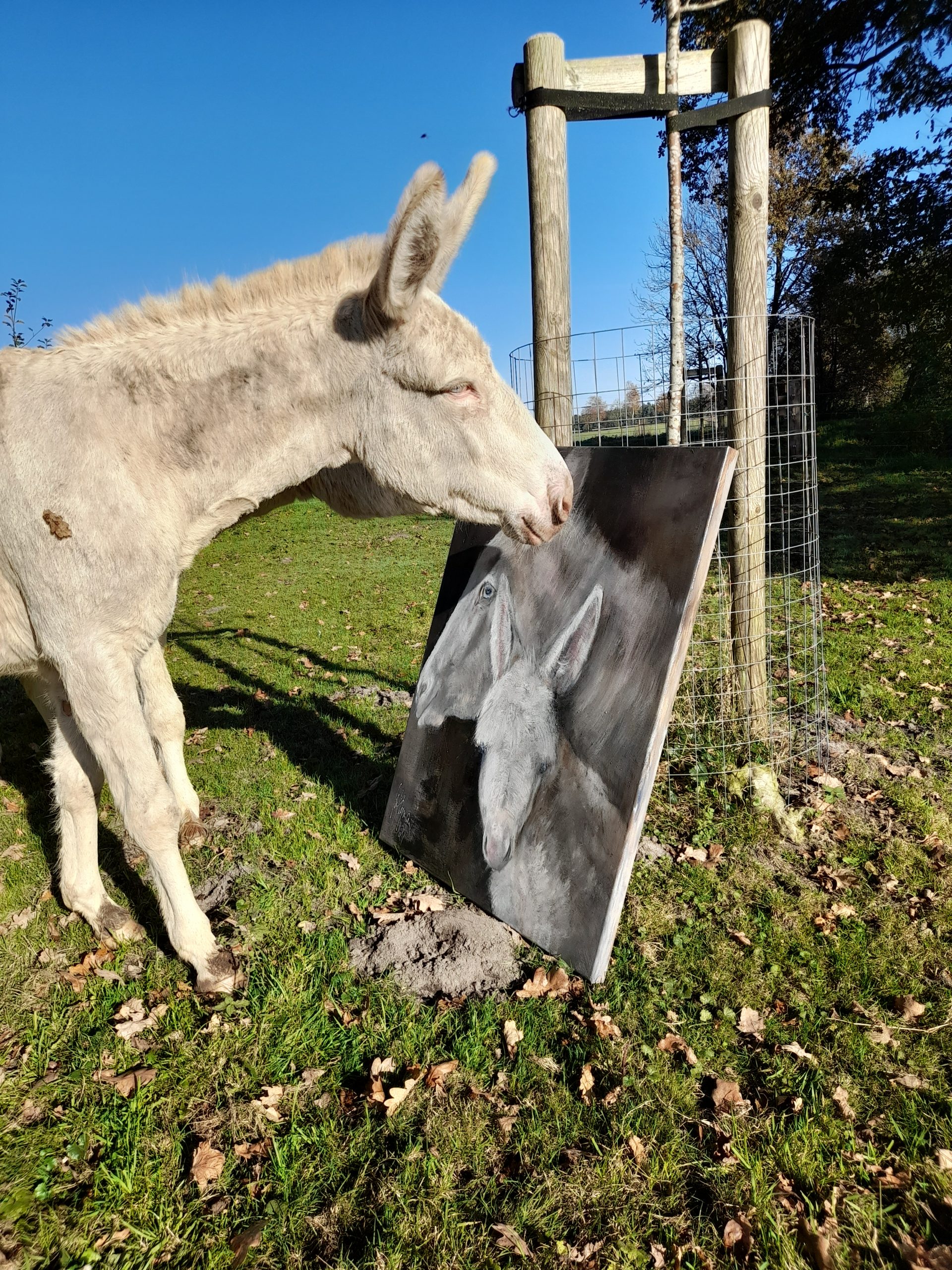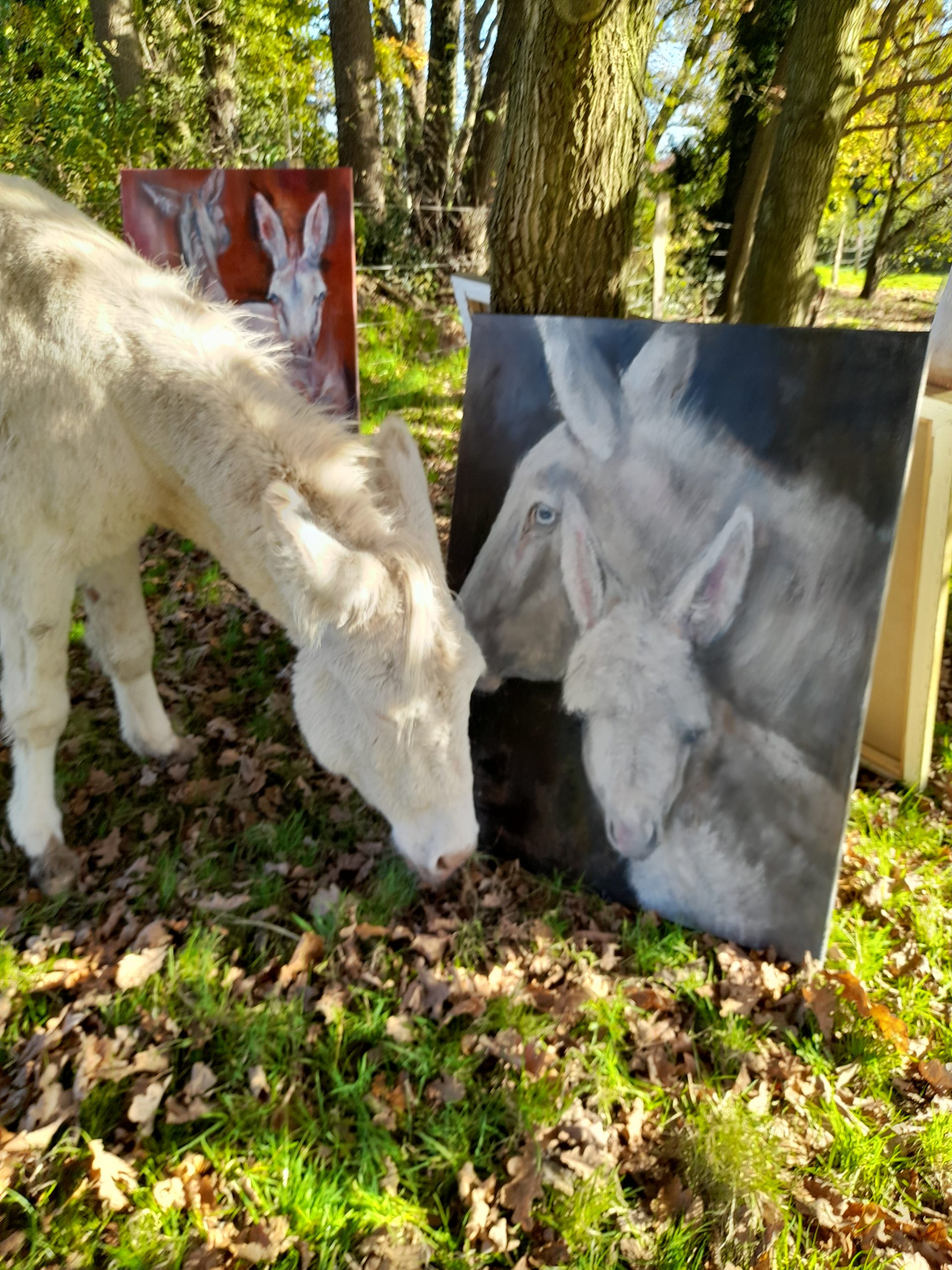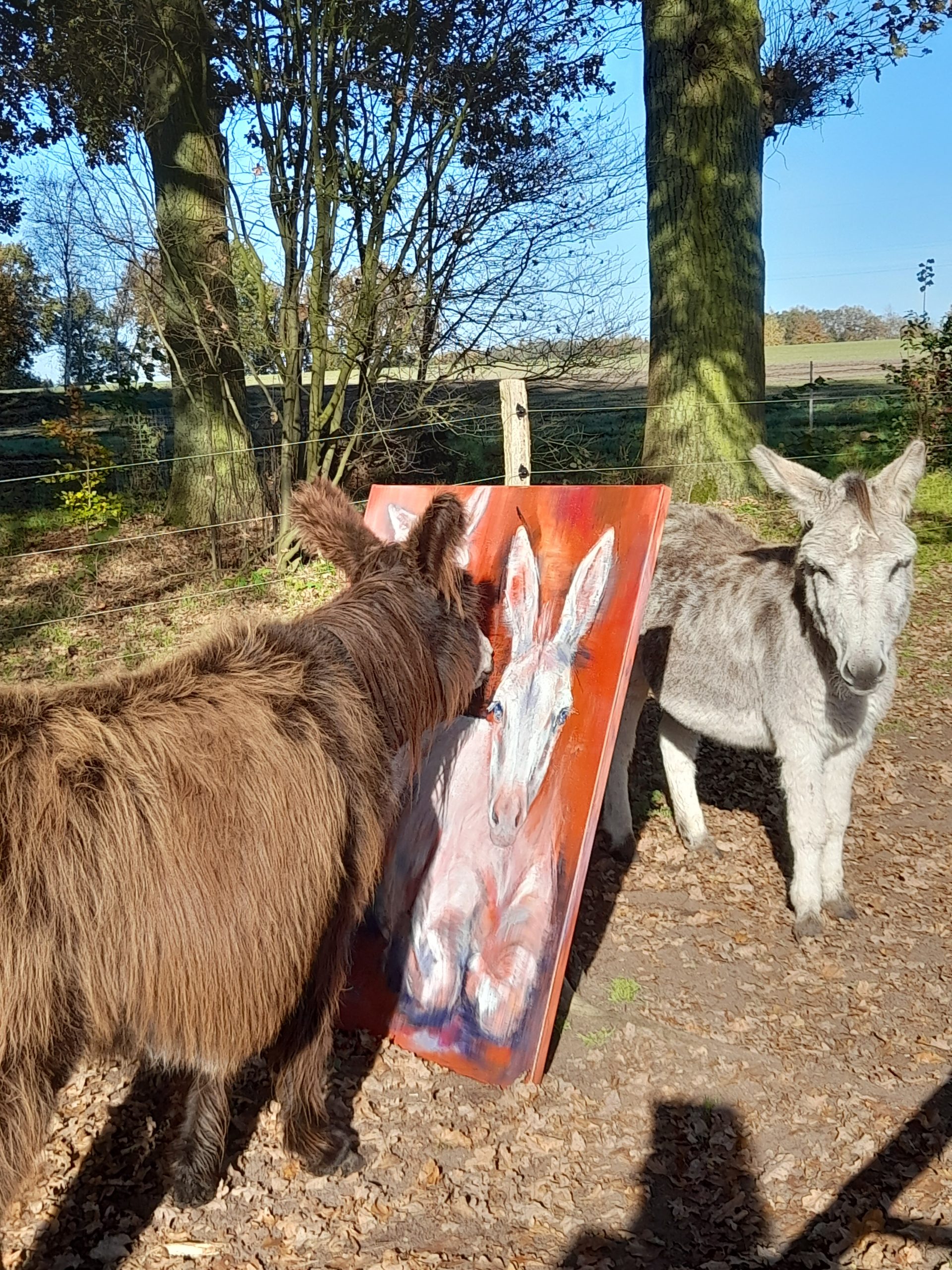 Auf unserem schönen “Höllershof” leben seit einigen Jahren die überaus seltenen Österreich Ungarischen Weißen Barockesel “Marie und Antoinette”. Sie dienen neben aller Freude, die wir mit ihnen haben, als meine Malmodelle.
