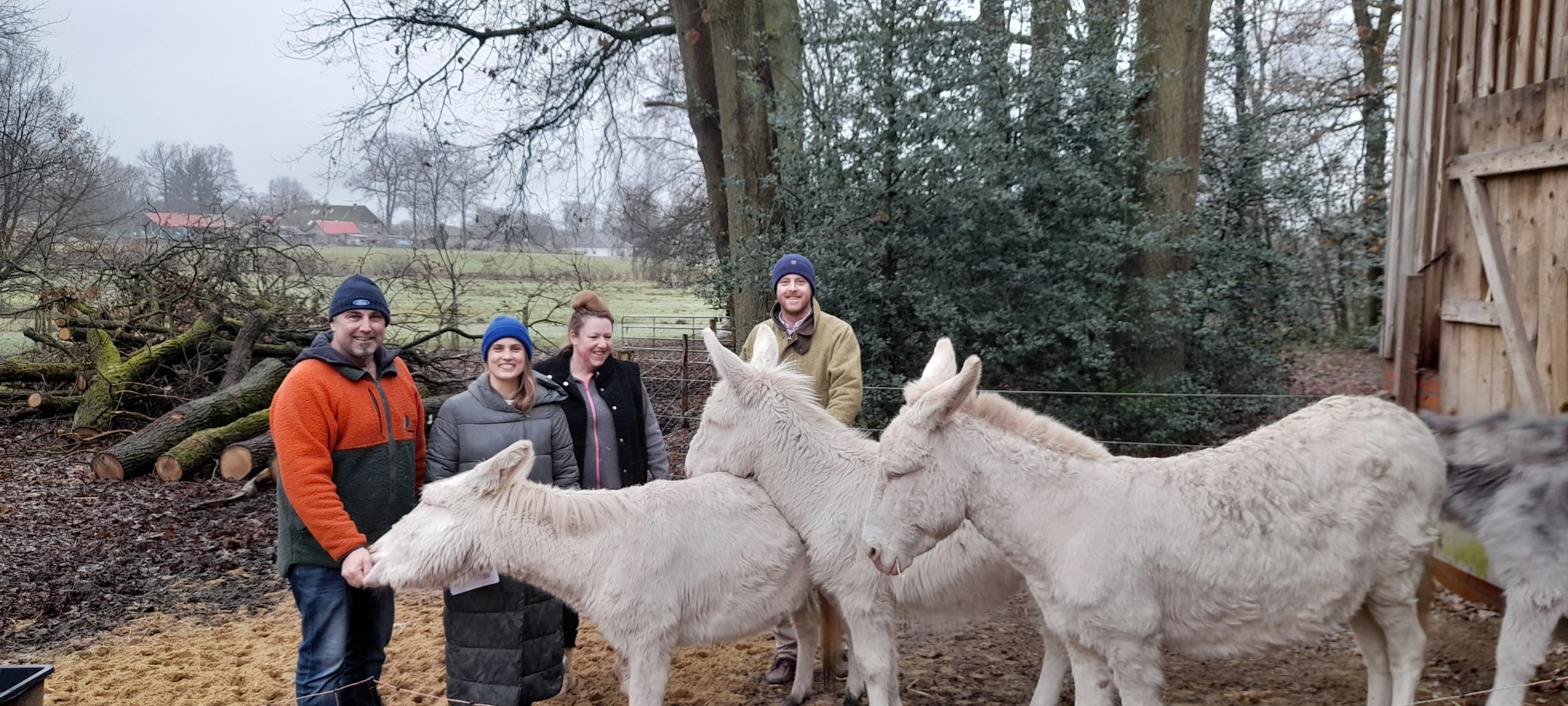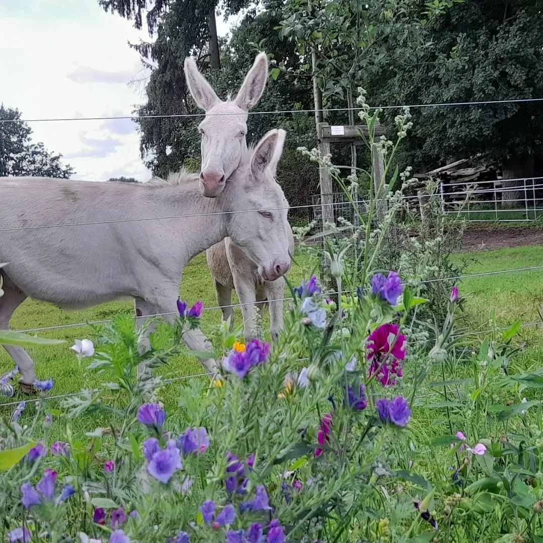 Von den “Lichtbringern”, wie sie in der Barockzeit genannt wurden – denn alles Weiße war etwas Besonderes und Reines – gibt es nur noch knapp 400 gelistete Tiere weltweit. Axel und ich konnten 2023 zwei Stuten erwerben und wir waren natürlich daran interessiert, dass die beiden offiziell ins Stutbuch des “Vereins zur Erhaltung der weißen Barockesel” AT aufgenommen werden. Im Januar 2025 inspizierte eine Kommission aus Österreich die weißen Schönheiten und beide sind ins Stutbuch eingetragen worden. Das freut uns sehr, denn wir würden gerne hier in Norddeutschland zur Erhaltungszucht beitragen.